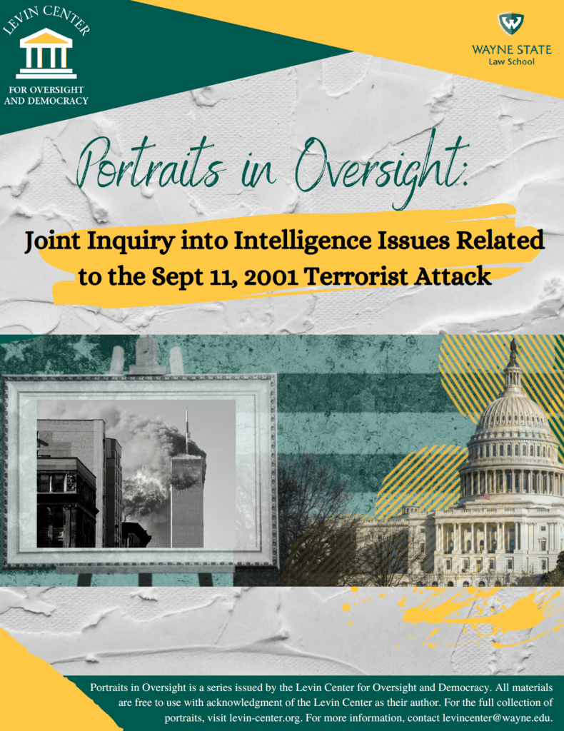 Today, in commemoration of the 21st anniversary of the 9-11 terrorist attack on the United States, the Levin Center for Oversight and Democracy in collaboration with the U.S. Capitol Historical Society is releasing a Portrait in Oversight profiling the bipartisan, bicameral congressional investigation that examined the intelligence failures behind the attack and spurred major intelligence reforms.